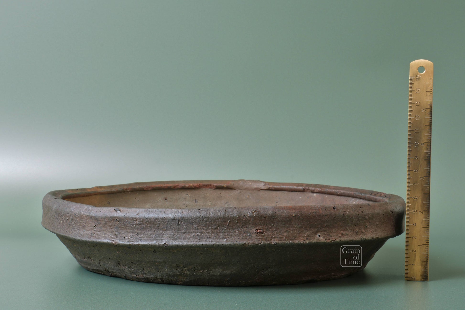 Japanese bonsai pot, handmade nanban style, wood fired, external rim, no signature.