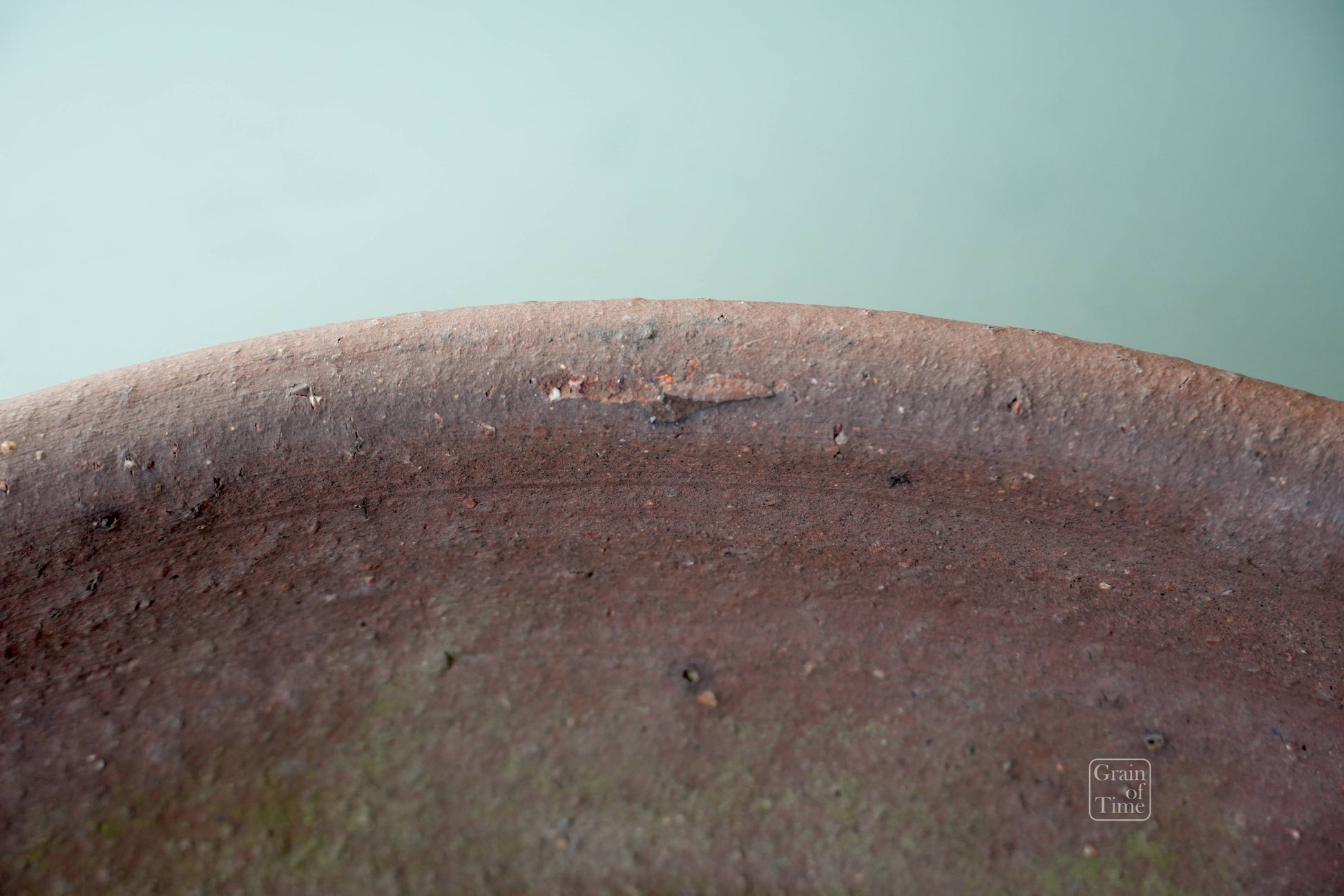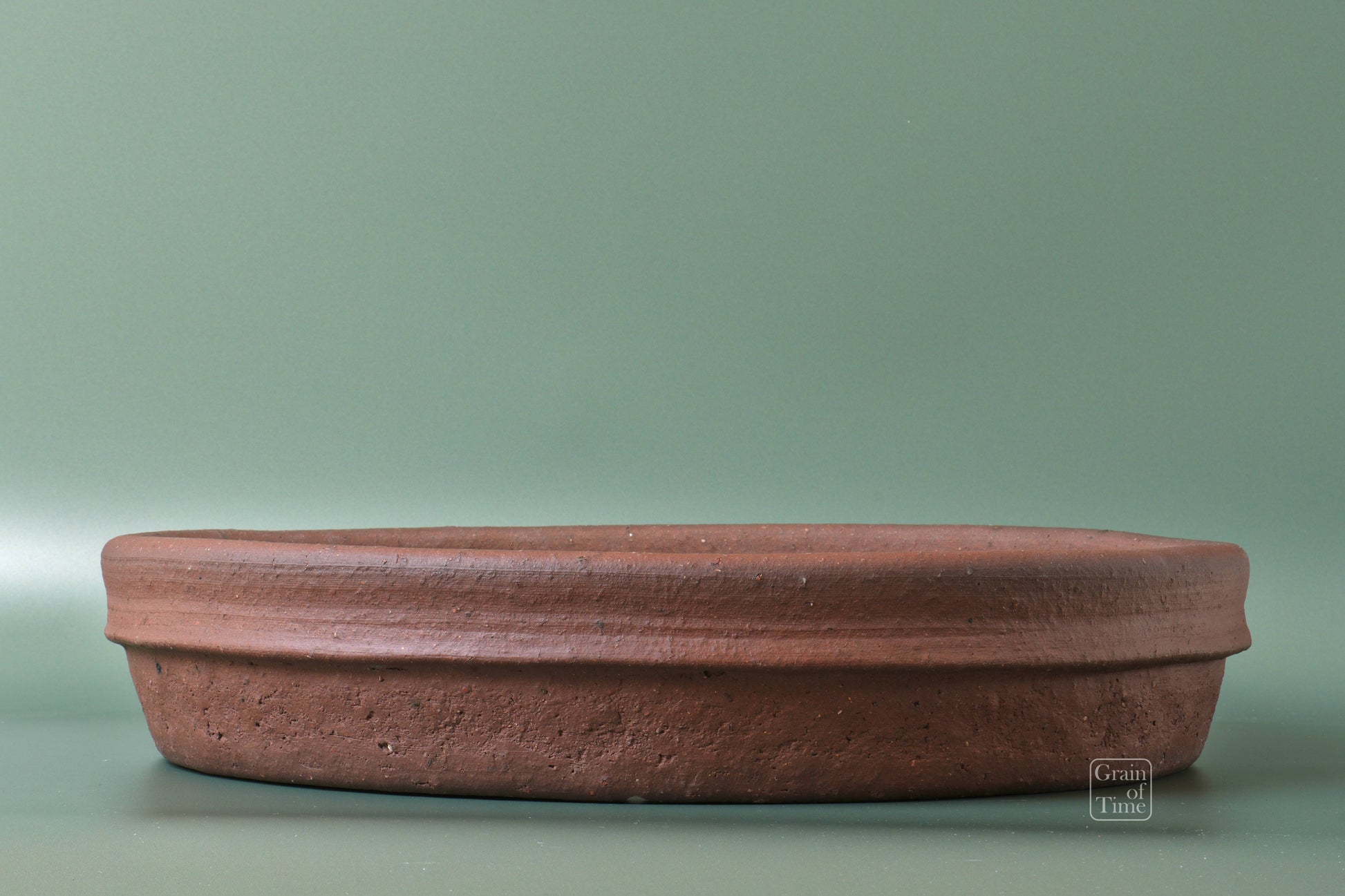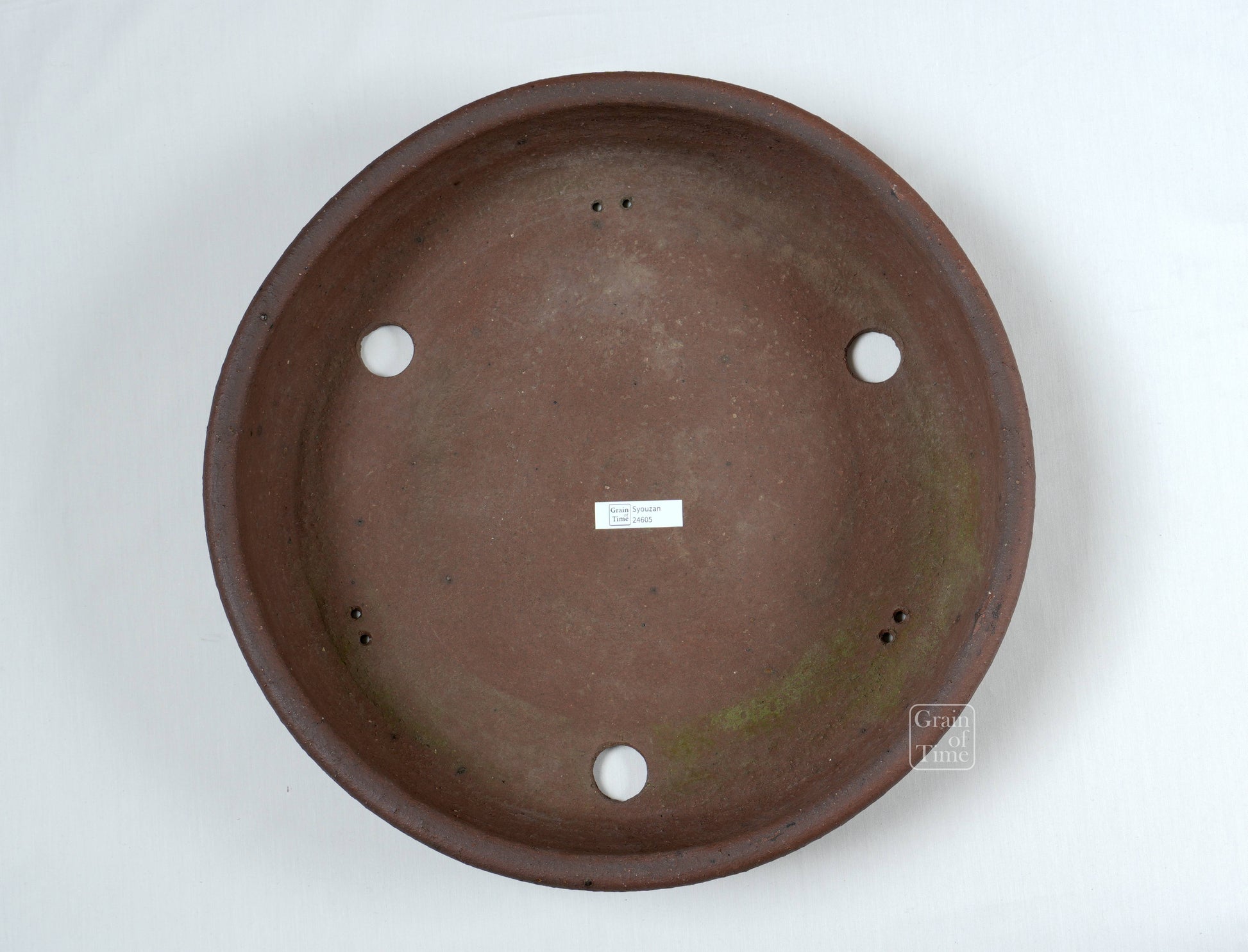 A huge pot, suitable for a 3-4ft tall tree, possibly more. It's a lot deeper than the usual nanban, a fact that has been disguised by making the folded over rim reach down almost halfway, a kind of optical illusion making it look shallower. Clever stuff.