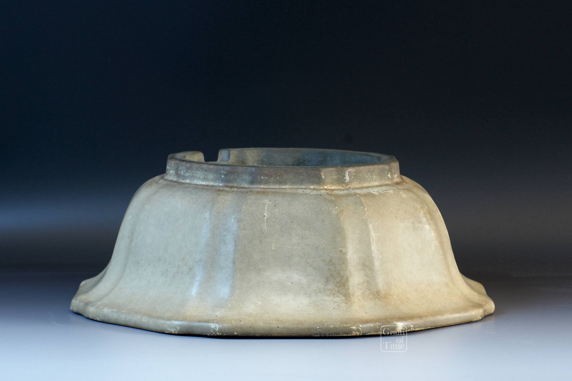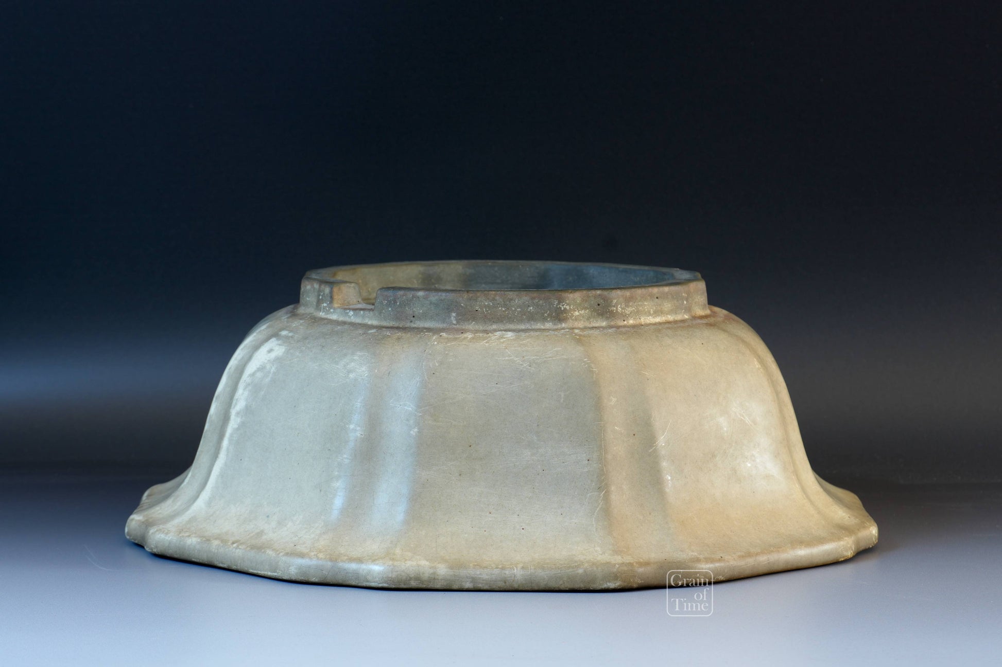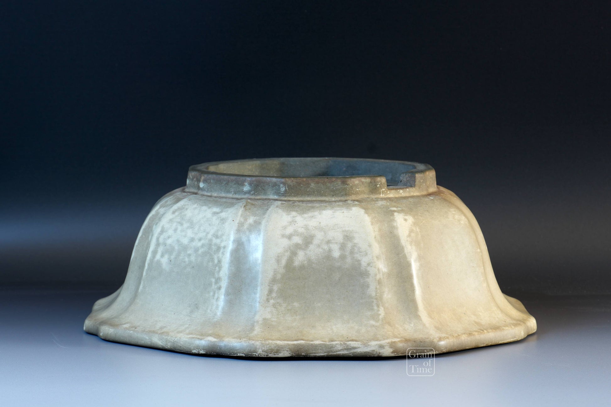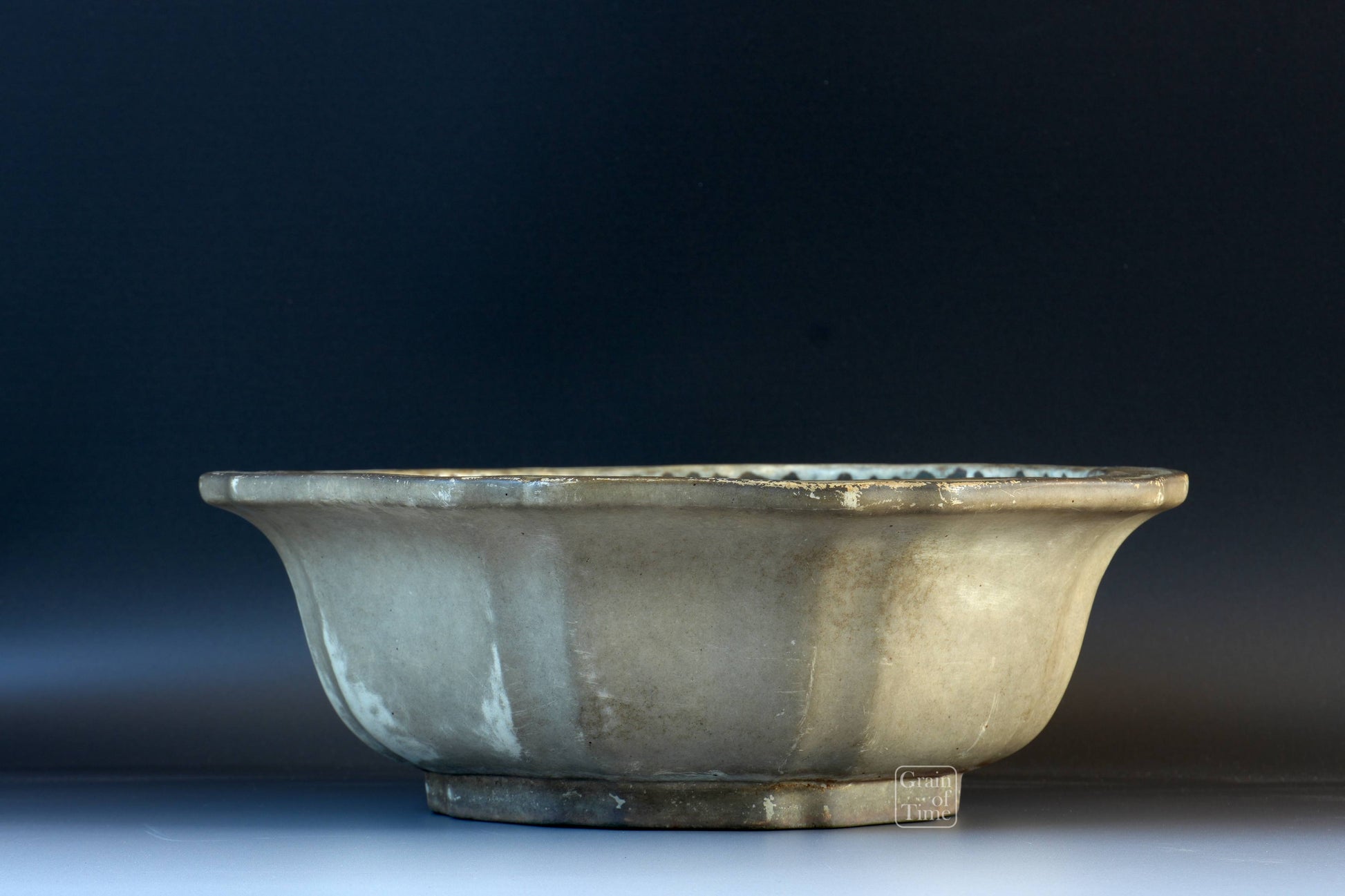 Rarely available large semi-cascade pot, this is a perfect match for a larger flowering semi-cascade tree. The pot has quite some patina, and this could be toned down somewhat if that's what was desired, but on no account clean the top of the rim or the foot ring! These are really characterful parts of the pot and tell of it's age.