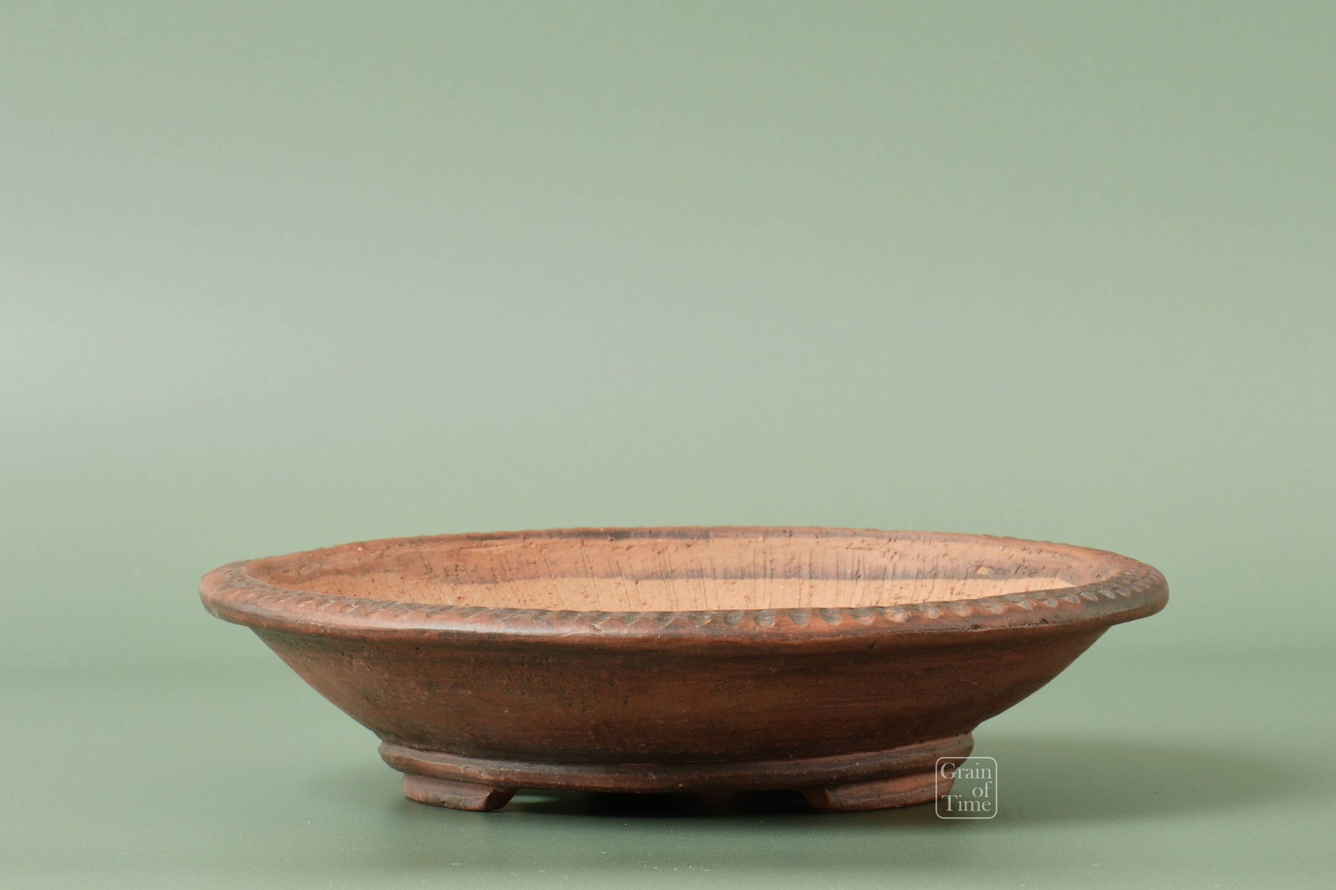 A handmade round pot with a great, rustic feel, nice details to the rim and typical dark wash simulating old patina, typical of Tomifune.