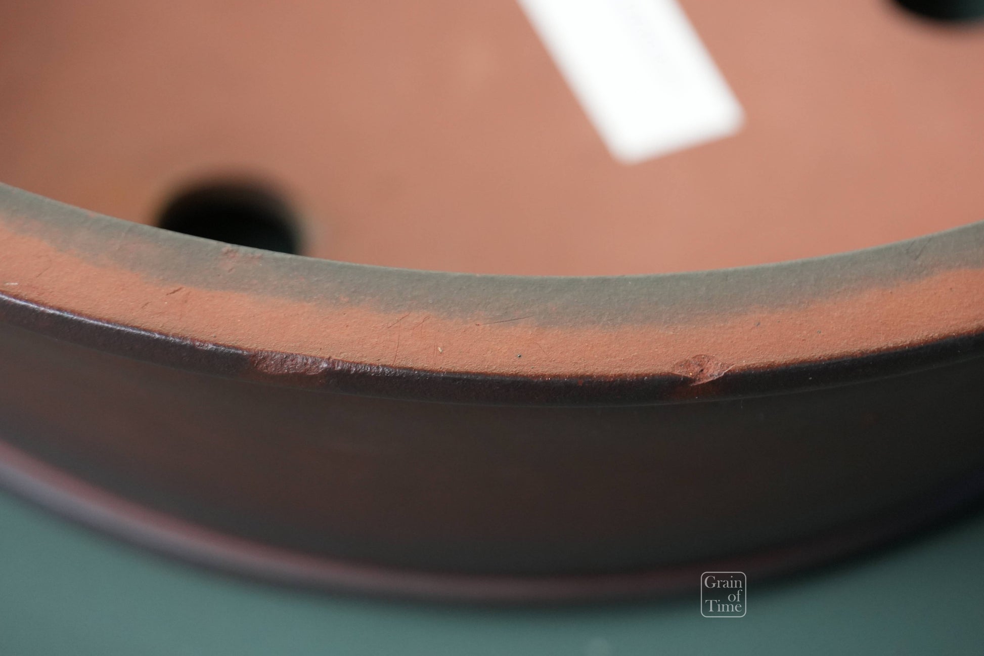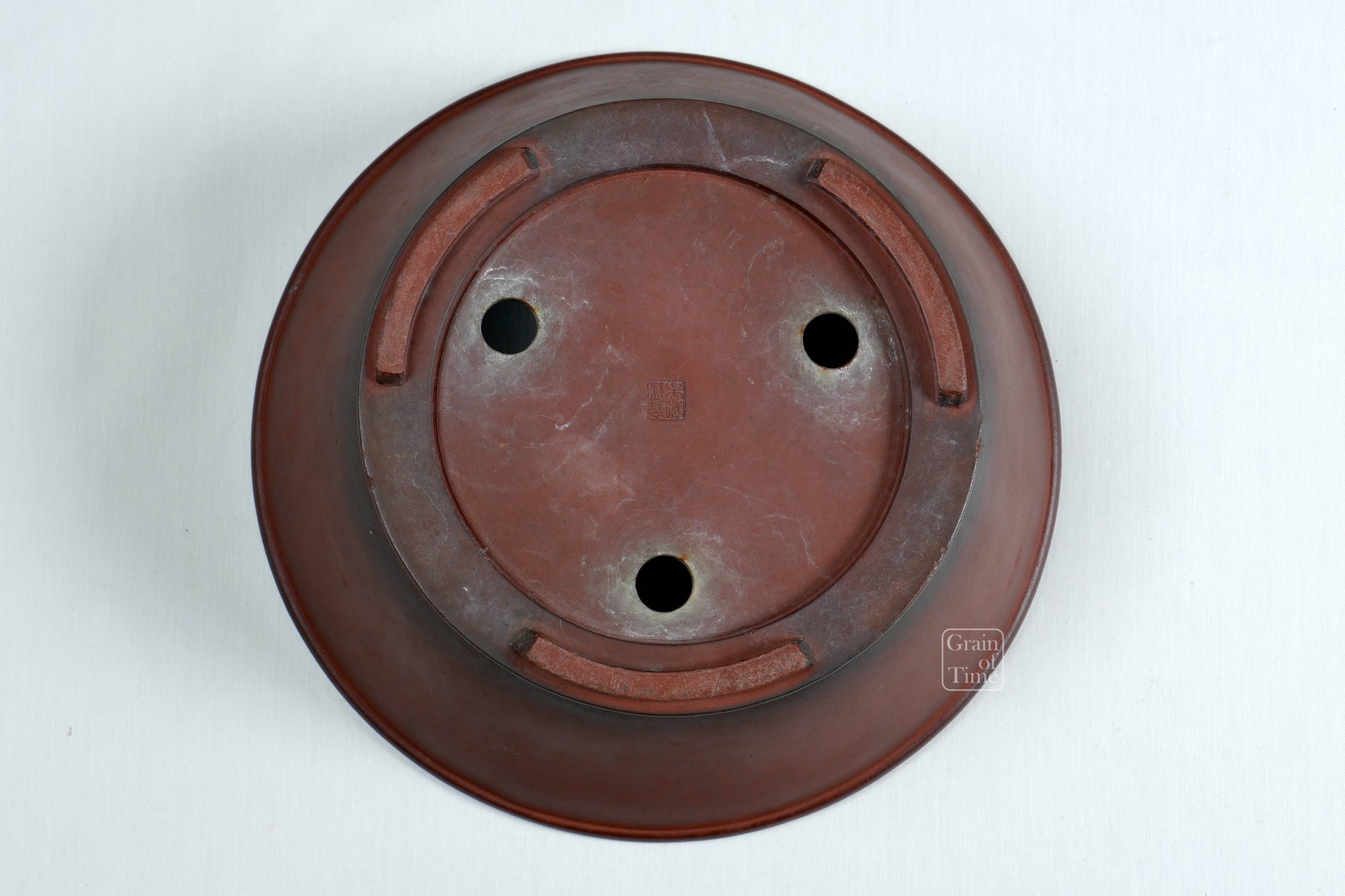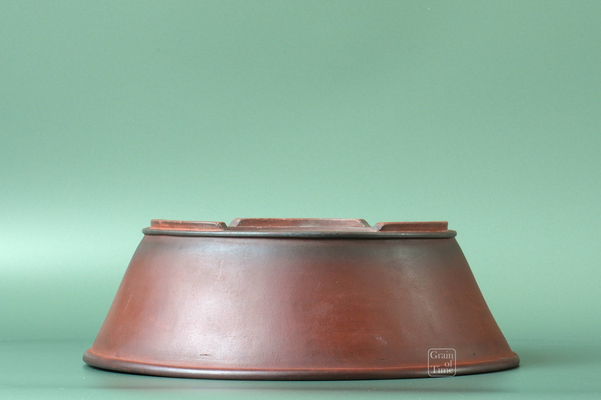 This pot is expertly thrown, the thickness of the walls and base are thin but not overly so. The depth of the rim is perfectly balanced by the lower bead above the feet, and everything else is left to the quality of Zisha clay, and the patina of over 100 years of use as a bonsai pot.