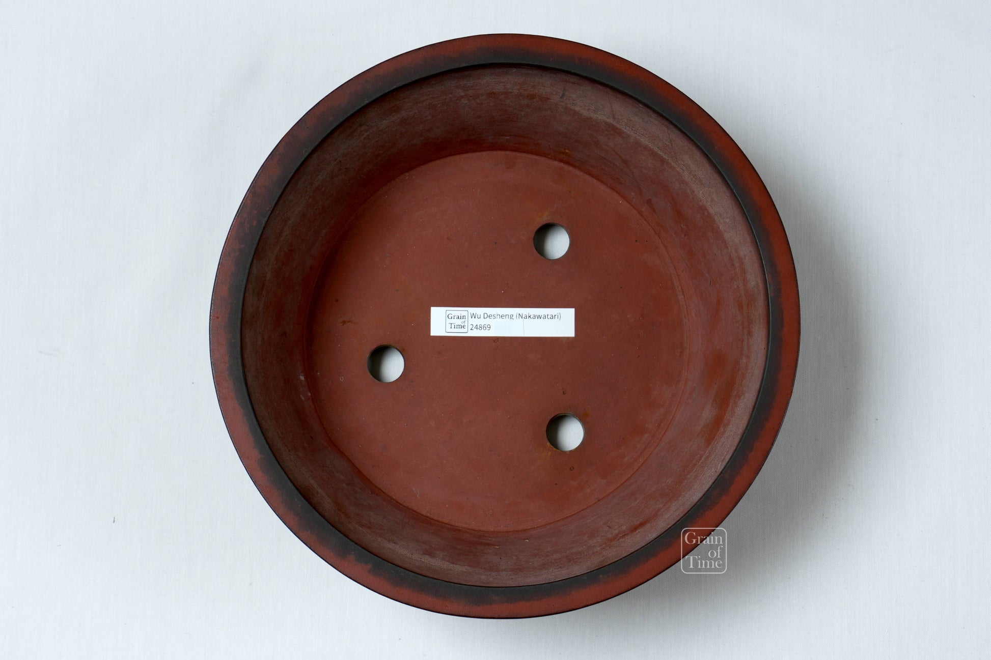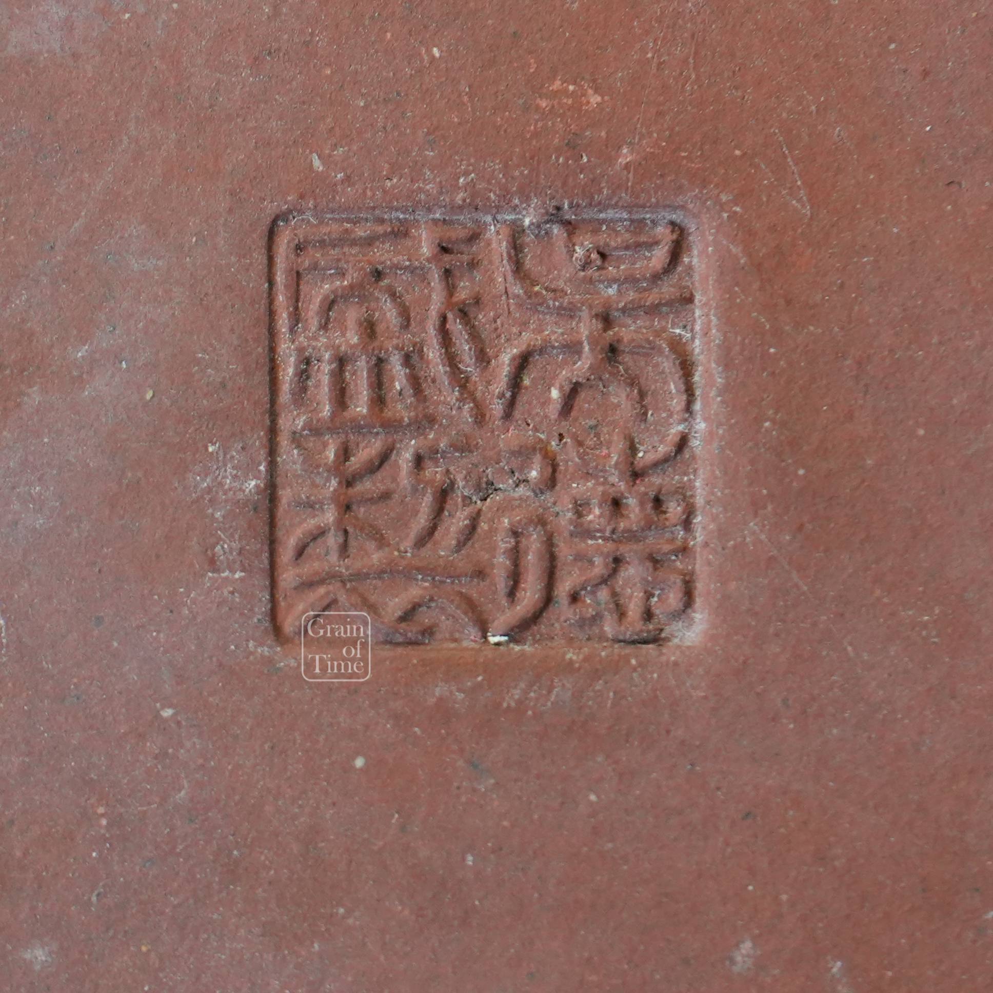 Wu Desheng - Nakawatari era pottery, circa 1800-1911. This was a large outfit in Yixing, China, and was very productive, presumably bonsai pots only made up a small portion of their wares. Their pots are one of the more commonly available of these antique pots. Typical features are traditional designs, fine grained red Zisha clay with a very subtle pear skin texture. Name in the MRB database is 'Kotokusei'.