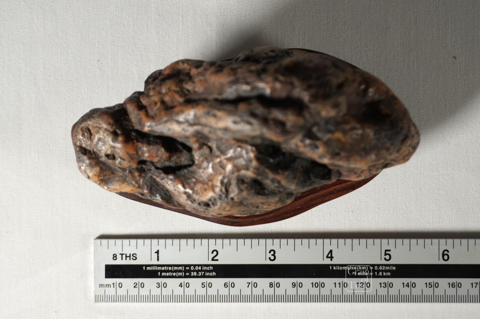 So in terms of stone type, it is unclear, and I'm not an expert who can definitively say. This seems to be a common theme in suiseki - "Only the person who pulled it from the riverbed truly knows", is how the saying goes. Whichever kind of stone it is, it has an antique agate-like quality good enough for the national exhibition in Japan.