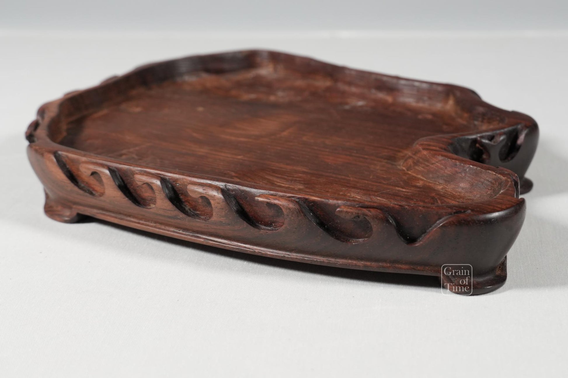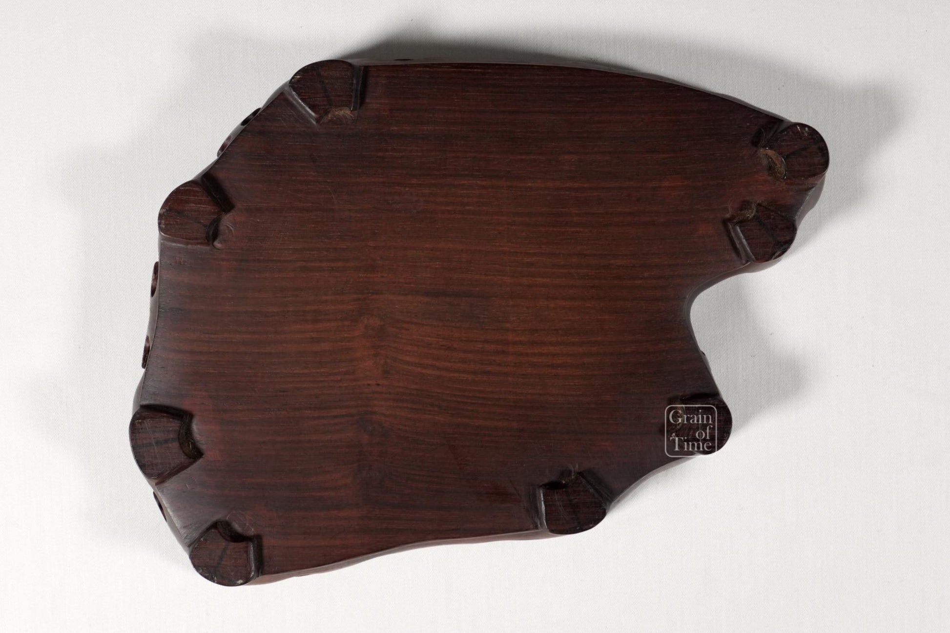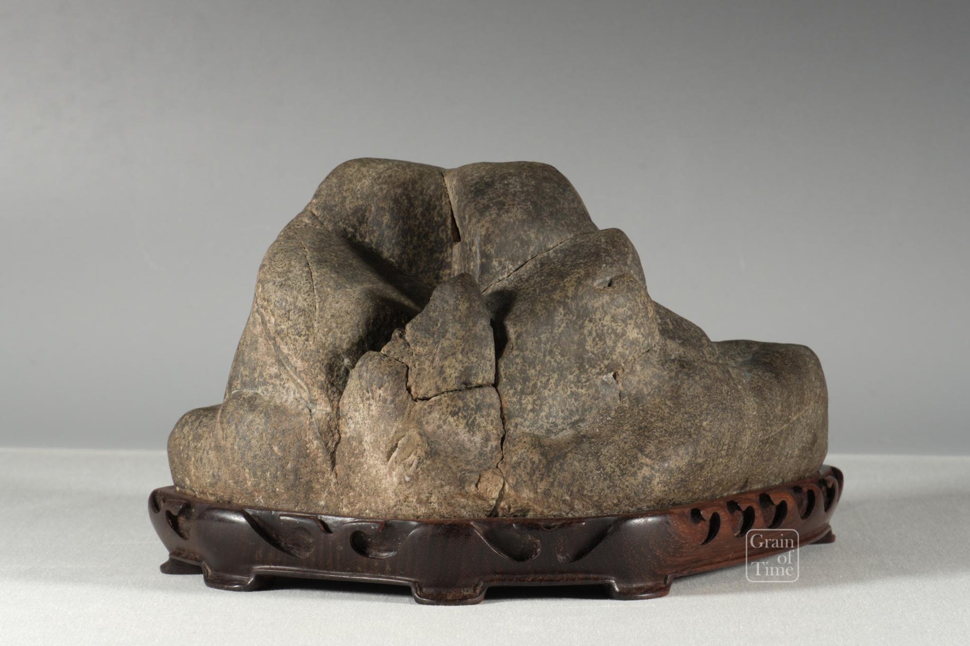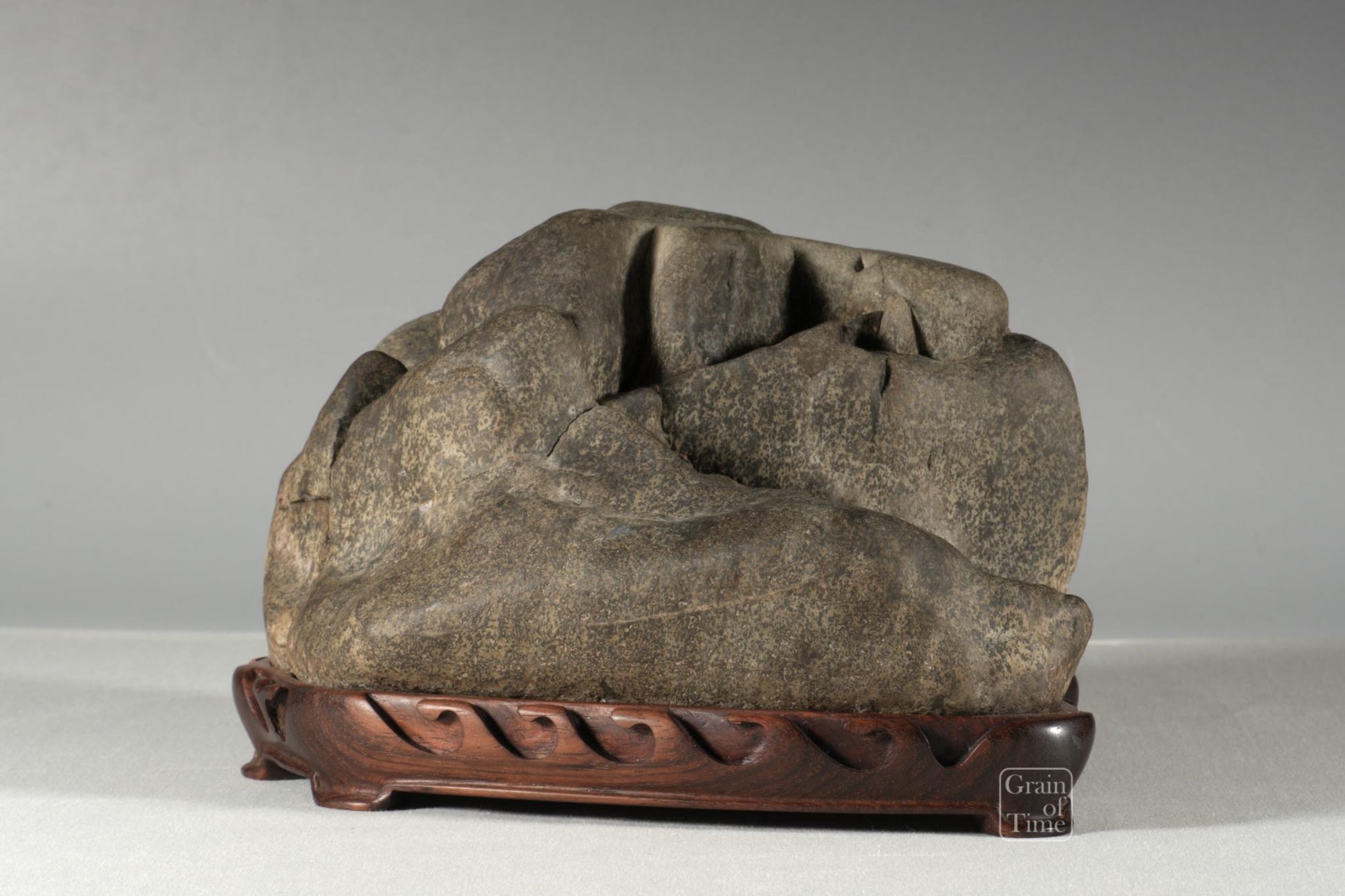 The daiza gives us another clue that it's Chinese, and the styling tells us we should interpret this as Shimagata - an Island stone. The daiza is carefully made, although a small part of one wave carving has been damaged (see photos).