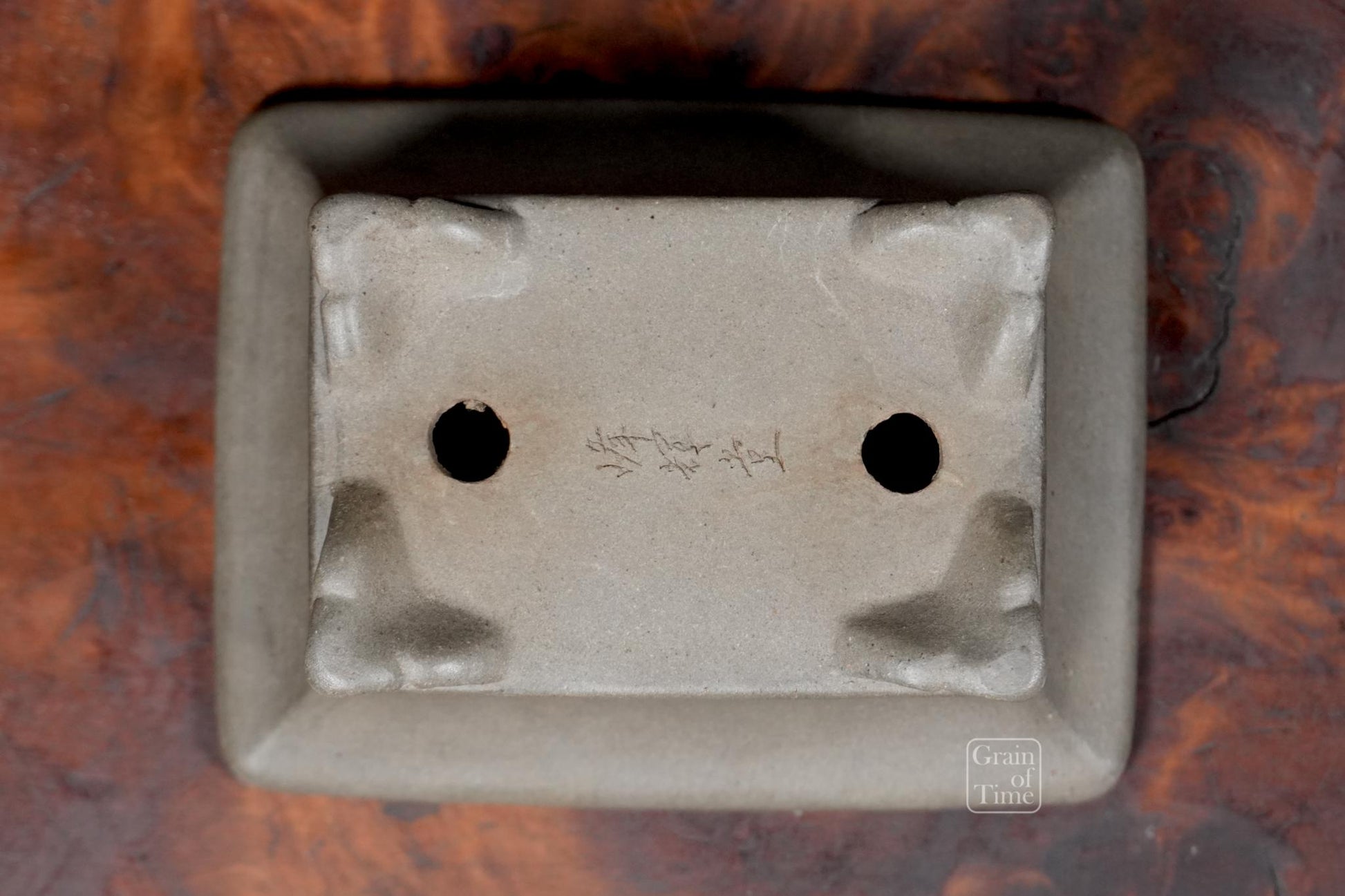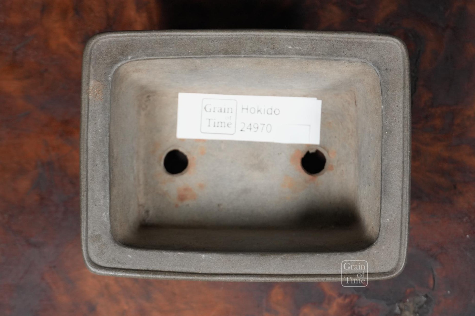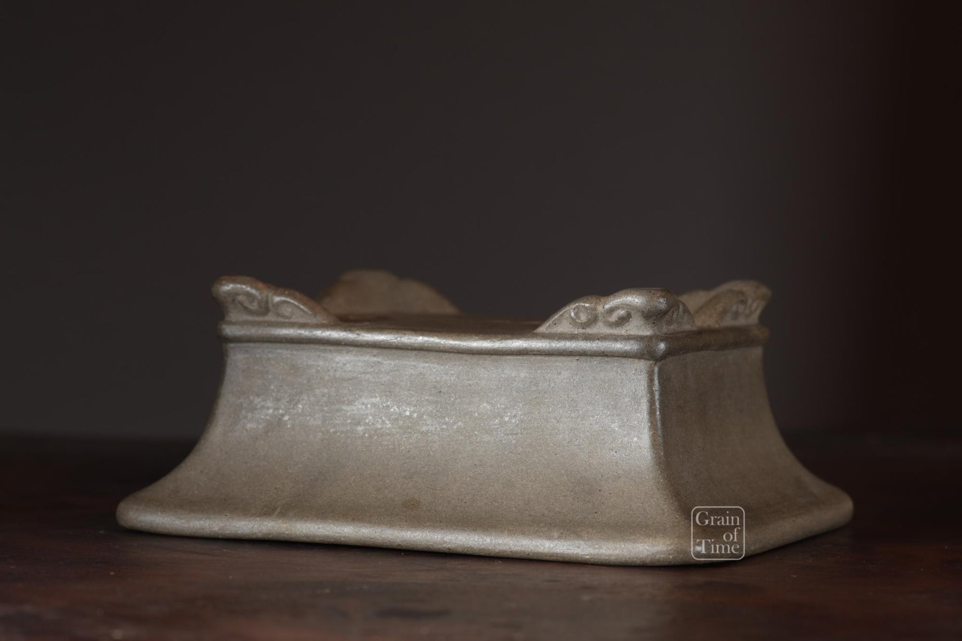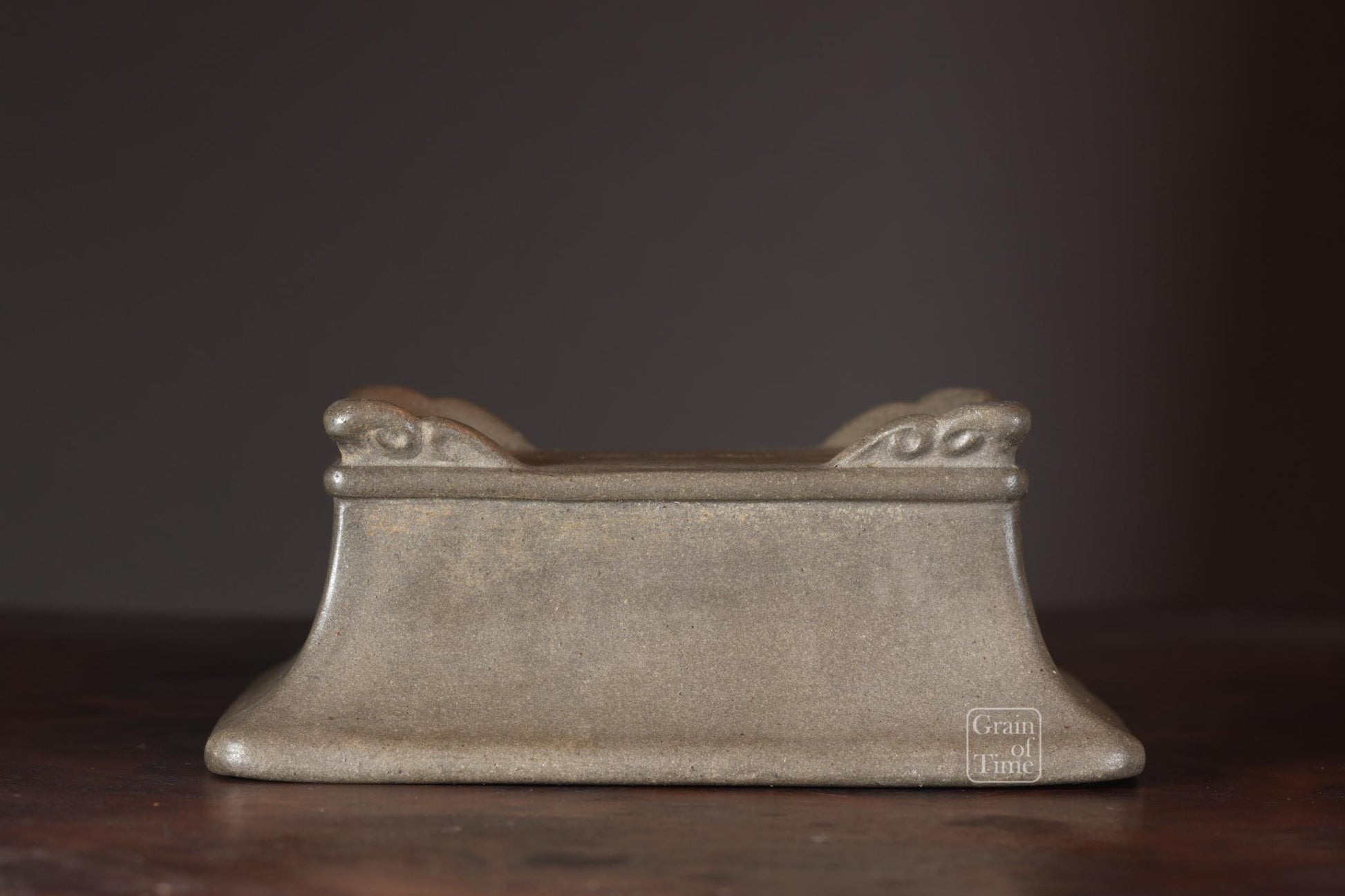 A patinated rectangle from a set I recently acquired, in great condition with some patina. Hokido's grey pots represent good value as they are less sought after than his Shudei red/brown clay pieces. Hand signed too.