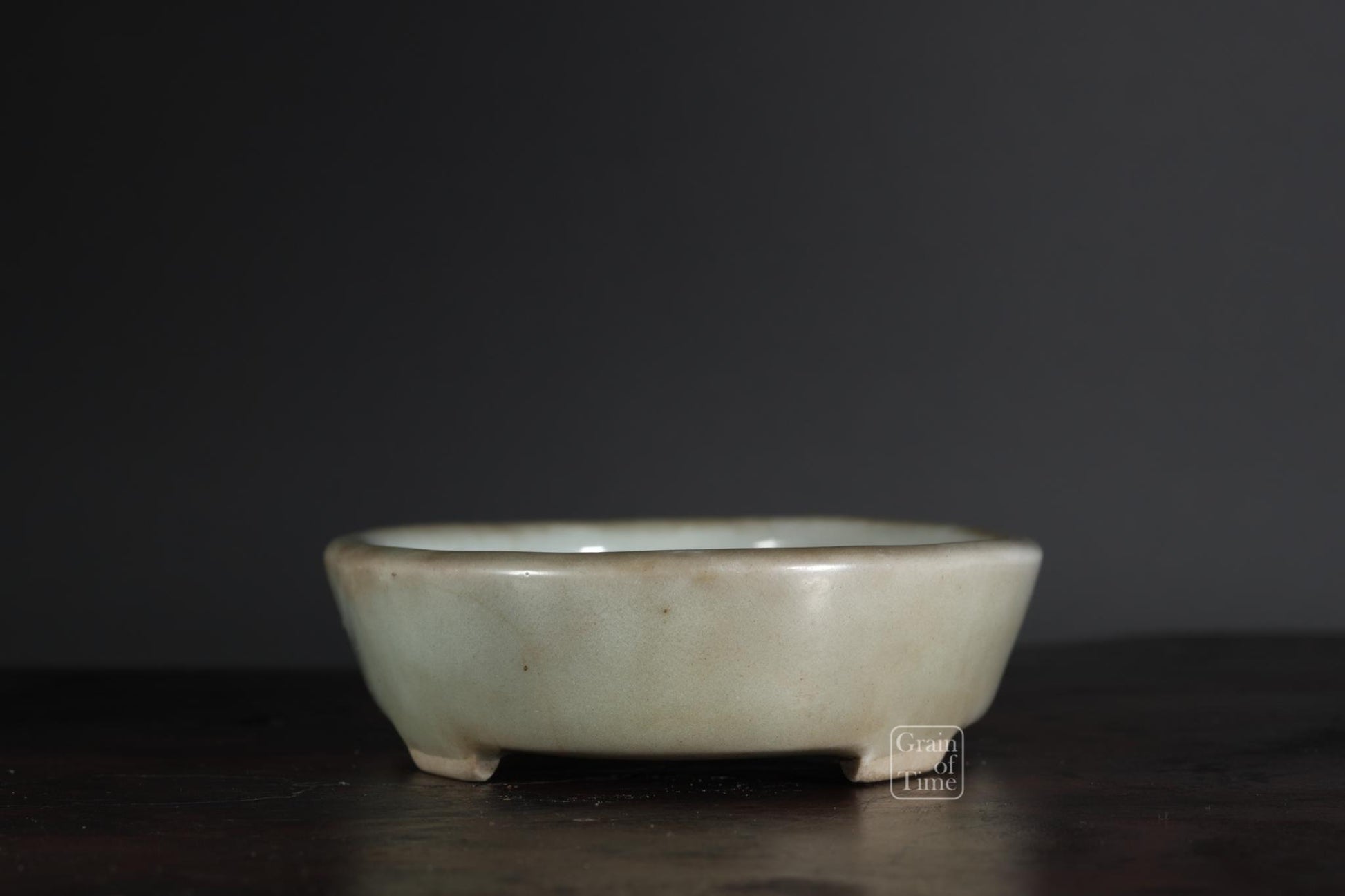 Imaokas pots are varied and collectible, there are many twists on celadon glazes, this simple and understated one is very usable and would suit many deciduous trees.