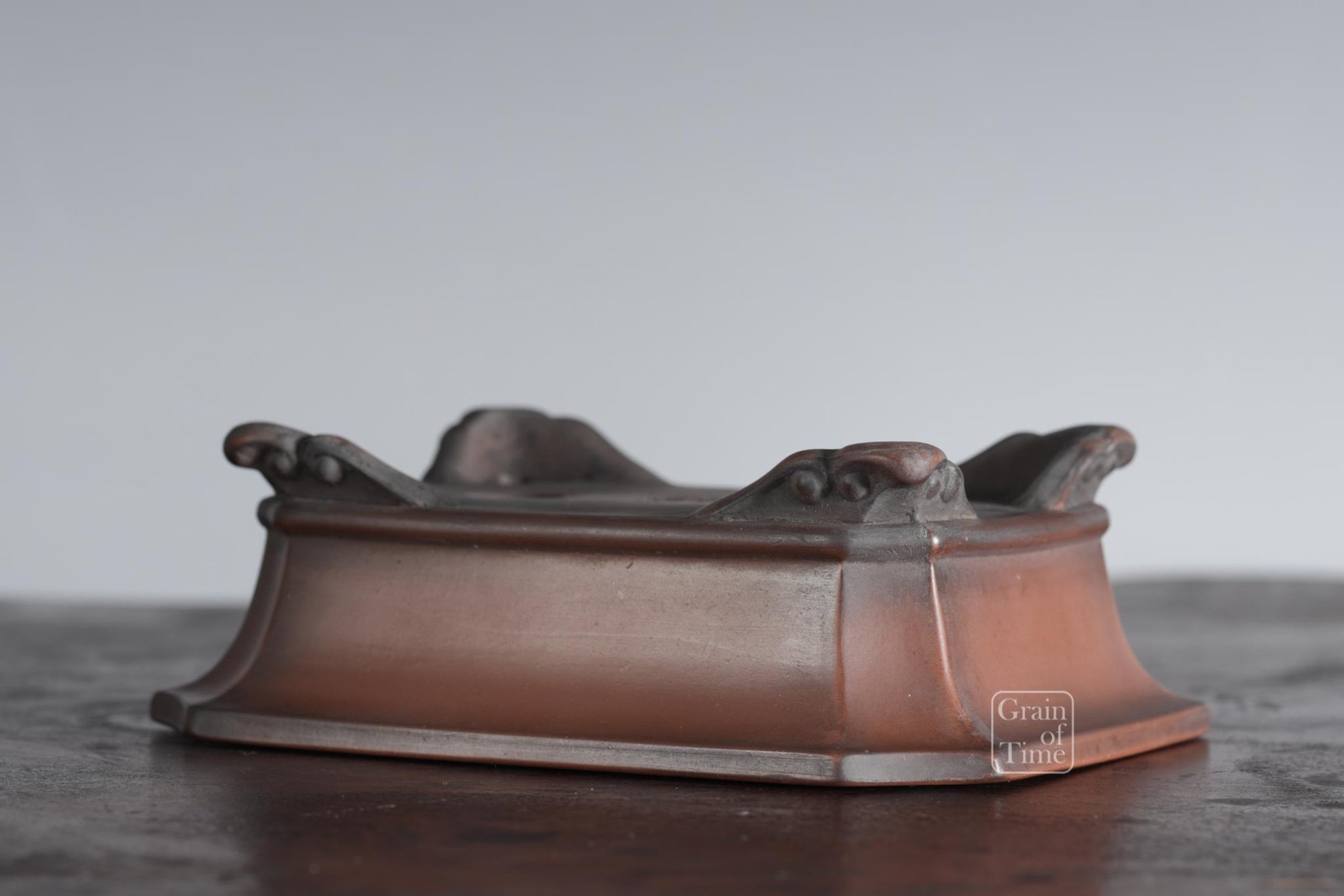 A patinated rectangle from a set I recently acquired, absolutely exquisite! The cut corners suggest a powerful design, but paired with the lower band and cloud feet, it also has an elegant feel.