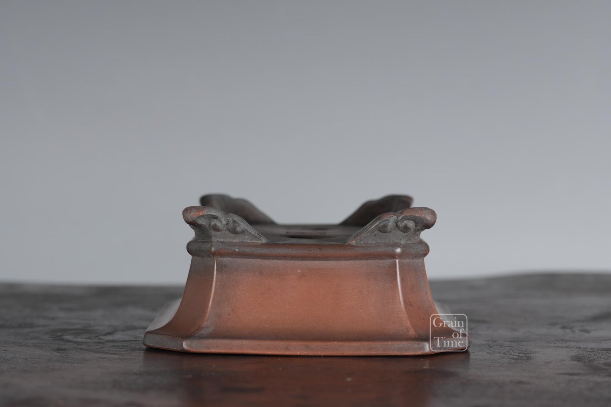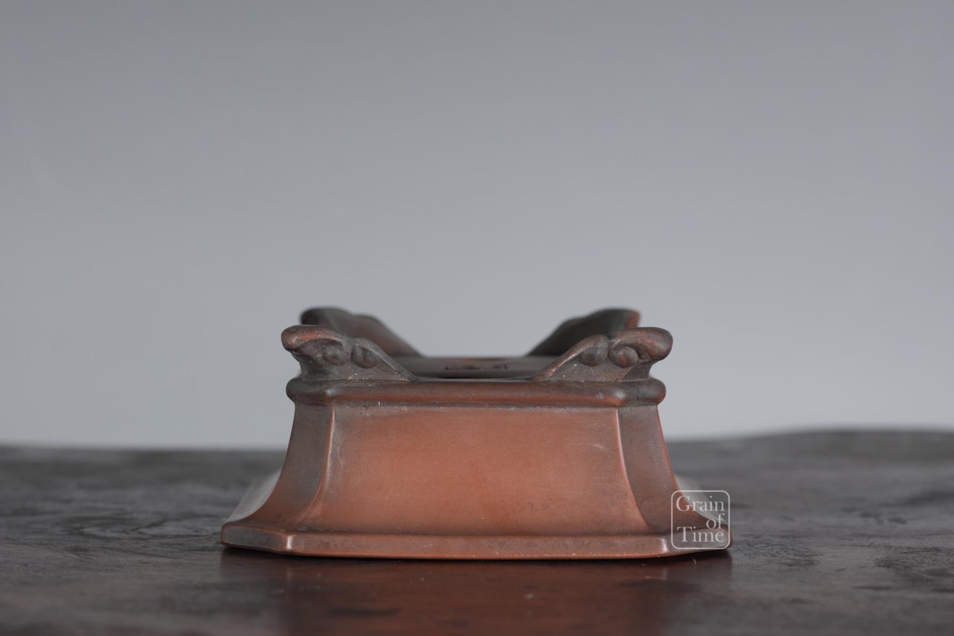 When his pots first came out, they caused a stir - people were impressed by the burnished finish of his red clay, as well as the dark shading that mimicked ancient patina - the pots had the look of valuable Chinese antiques. Nowadays many pots have real patina too, adding to the look.