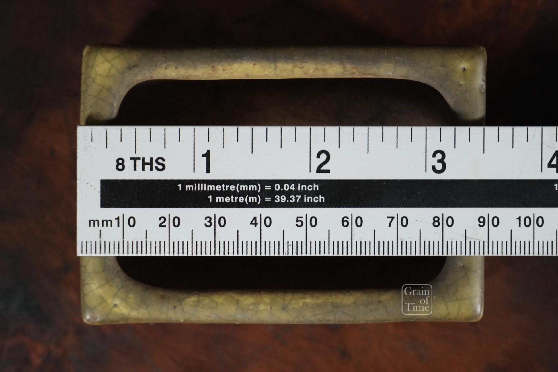 25009: Gyoun - Yellow Crackle Rectangle w/ Patina - 89mm